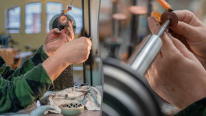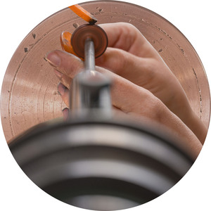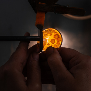 Graveren aan het wiel, het werk van glaskunstenaar Sacha Brienesse vastgelegd. Zie https://sachabrienesse.com/